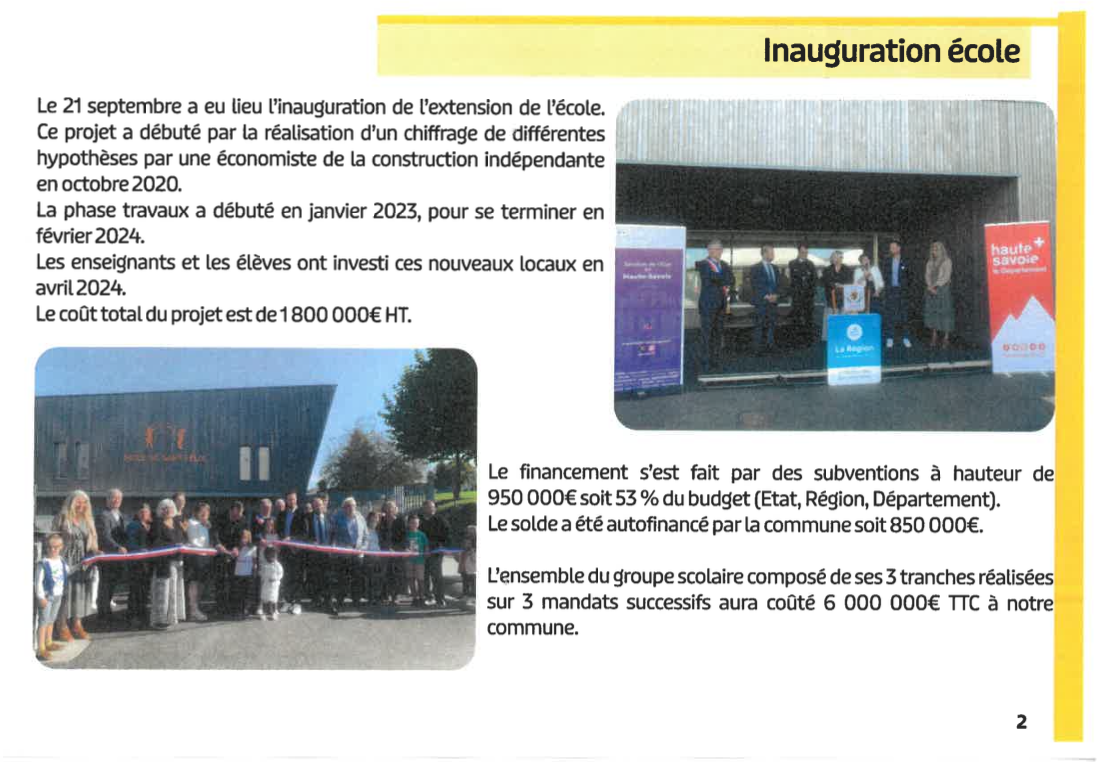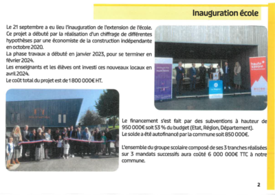 Il a attribué la somme de 13 340 € de subvention d’investissement pour une dépense de 33 349 € ht relative à la création d’un préau dans la cour de l’école maternelle et à l’achat de jeux pour les petits.